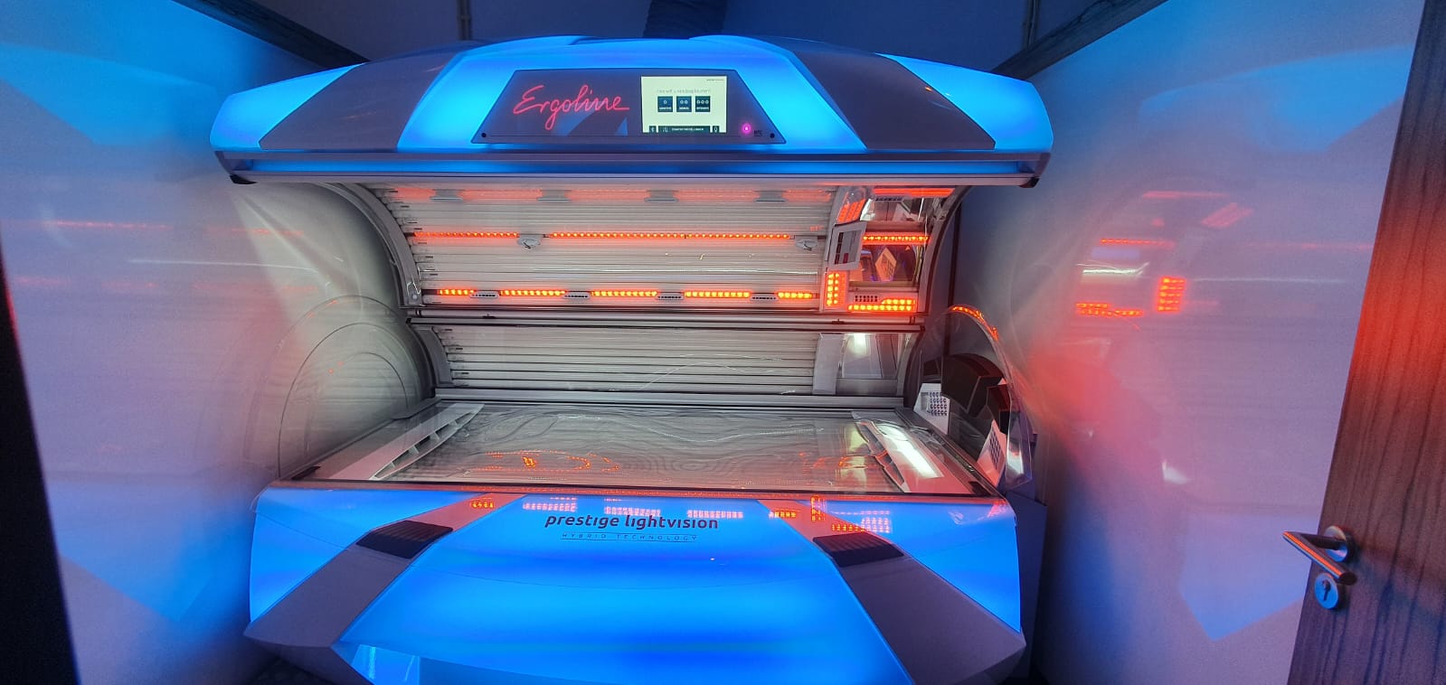 Het nieuwe topmodel Ergoline prestige 1600 zet met het verder ontwikkelde Hybrid Performance en Beauty Light LED een nieuwe maatstaf in de bruinings-technologie. De unieke combinatie van UV en rood licht maakt een bijzonder mooie en diepe bruine kleur met gelijktijdige huidverzorging mogelijk. Nieuw is ook de Personal Sunstyle. Door het indrukken van de keuzetoets ontvangt iedere klant zijn persoonlijke gewenste kleur.